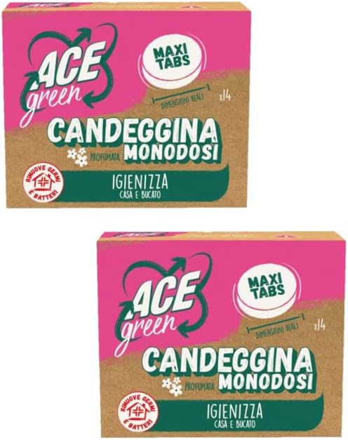 ACE Bleichmittel Green Single Pack ist eine umweltfreundliche und effektive Lösung zum Waschen von Kleidung. Mit 2 Packungen, die jeweils 14 Tabs enthalten, bietet dieses Produkt eine langanhaltende Reinigungskraft für eine Vielzahl von Textilien.