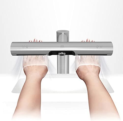 Das Gerät verfügt über einen gebürsteten Edelstahl-Wasserhahn, der nicht nur elegant aussieht, sondern auch langlebig und leicht zu reinigen ist. Der Händetrockner verfügt über eine leistungsstarke Luftdüse, die die Hände in nur wenigen Sekunden trocknet. Dies spart nicht nur Zeit, sondern auch Papierhandtücher und reduziert so den Abfall.