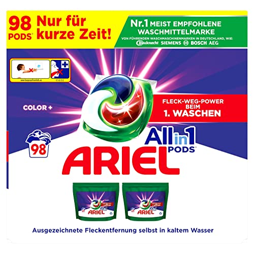 Ariel Waschmittel Pods All-in-1, Color Waschmittel, sind eine praktische und effektive Lösung für alle, die ihre bunte Wäsche schonend und gründlich reinigen möchten. Mit insgesamt 98 Waschladungen in einer Packung (2×49 Pods) bieten sie eine langanhaltende Reinigungskraft, die selbst hartnäckige Flecken bei niedrigen Wassertemperaturen entfernt.