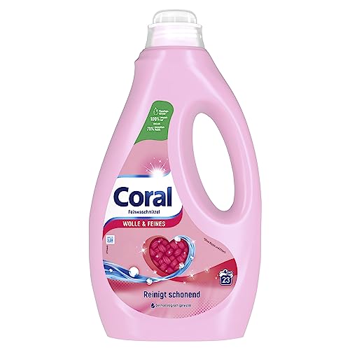 Coral Feinwaschmittel Wolle & Feines Flüssigwaschmittel ist die ideale Lösung für alle, die ihre empfindlichen Textilien schonend reinigen möchten. Mit einer Packung von 23 Waschladungen und einem Inhalt von 1,15 Litern bietet dieses Flüssigwaschmittel eine langanhaltende Reinigungskraft, die selbst die sensibelsten Stoffe nicht schädigt.