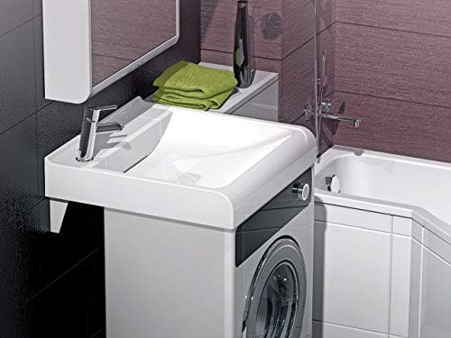 Ein besonderes Highlight dieses Waschbeckens ist die integrierte Ablagefläche für Waschmaschinen. Diese praktische Funktion ermöglicht es, die Waschmaschine direkt über dem Waschbecken zu platzieren, was nicht nur Platz spart, sondern auch die Nutzung des Waschbeckens erleichtert. So können Sie bequem und effizient Ihre Kleidung waschen und gleichzeitig Ihre Hände im Waschbecken reinigen.