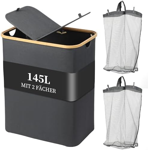 Der Wäschesammler ist mit einem Deckel ausgestattet, der nicht nur dafür sorgt, dass die Wäsche vor neugierigen Blicken geschützt ist, sondern auch verhindert, dass unangenehme Gerüche sich ausbreiten. Zudem sind zwei abnehmbare Wäschesäcke im Lieferumfang enthalten, die das Sortieren der Wäsche erleichtern.