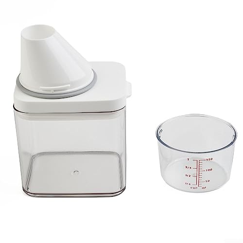 Die Waschpulver-Aufbewahrungsbox ist ideal für die Aufbewahrung von Waschpulver, das sich oft in unhandlichen Verpackungen befindet. Mit dem praktischen Dosiermechanismus können Sie das Waschpulver sauber und einfach dosieren, ohne dabei zu kleckern. Die Box hat ebenfalls ein Fassungsvermögen von 1500ml und bietet ausreichend Platz für Ihr Waschmittel.