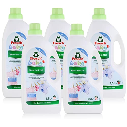 Dank der milden Formel ist das FROSCH Baby-Waschmittel auch für empfindliche Haut geeignet. Es reinigt die Kleidung gründlich und entfernt zuverlässig Flecken, ohne dabei die Haut Ihres Babys zu reizen. Das Waschmittel hinterlässt keine Rückstände auf der Kleidung und sorgt dafür, dass die Wäsche angenehm weich und duftend ist.