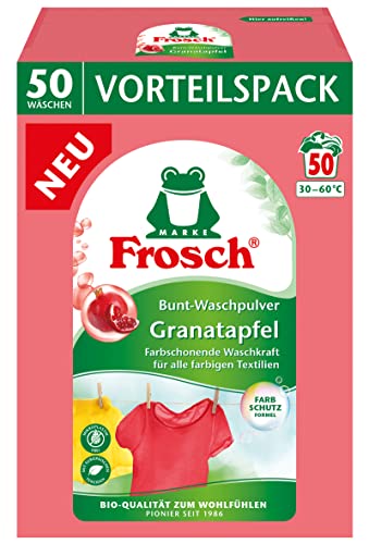 Ein weiterer Vorteil des Frosch Granatapfel Bunt-Waschpulvers ist der integrierte Farbschutz, der dafür sorgt, dass die Farben Ihrer Kleidung lange erhalten bleiben. Durch die schonende Reinigung werden die Farbpigmente nicht angegriffen und die Kleidung behält ihre Leuchtkraft und Intensität. So können Sie Ihre bunte Kleidung bedenkenlos waschen, ohne sich um ein Ausbleichen der Farben sorgen zu müssen.