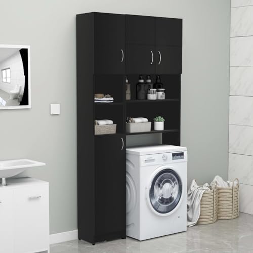 Homgoday bietet ein praktisches und stilvolles Waschmaschinenschrank-Set an, das perfekt für das Badezimmer ist. Dieses Set besteht aus verschiedenen Elementen wie einem Badschrank, einem Hochschrank, einem Badezimmerschrank, einem Schrank, einem Badregal und einem Waschmaschinenregal, die alle in einem eleganten Schwarz gehalten sind und aus hochwertigem Holzwerkstoff gefertigt sind.