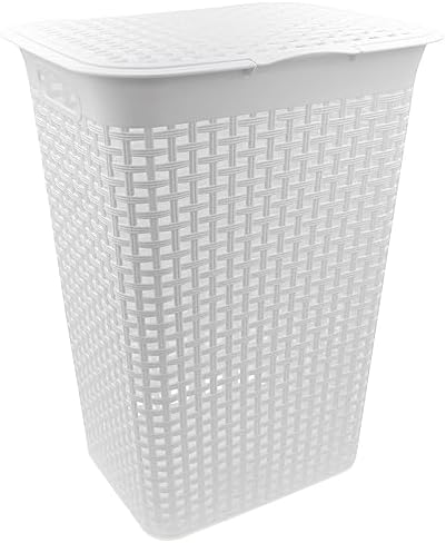 Der Wäschekorb besteht aus strapazierfähigem Kunststoff, der leicht zu reinigen ist und lange hält. Mit einem Fassungsvermögen von 55 Litern bietet er genug Platz für eine ganze Woche schmutzige Wäsche. Der Deckel sorgt dafür, dass die Wäsche immer ordentlich und außer Sichtweite ist, was Ihrem Raum ein aufgeräumtes Aussehen verleiht.