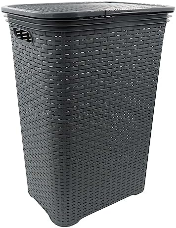 Das Design des Wäschekorbs ist besonders ansprechend, da es einem Rattan-Look nachempfunden ist. Dadurch fügt sich der Wäschekorb harmonisch in jedes Badezimmer, Schlafzimmer oder auch in die Waschküche ein. Der anthrazitfarbene Wäschekorb mit Deckel verleiht Ihrem Raum eine elegante Note und sorgt für eine ordentliche und aufgeräumte Atmosphäre.