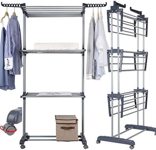 Darüber hinaus verfügt der johgee Turmwäscheständer über 4 Rollen, von denen 2 mit einer Feststellbremse ausgestattet sind. Dank dieser Rollen können Sie den Wäscheständer ganz einfach von einem Raum in den anderen bewegen, ohne dabei schwer heben zu müssen. Die Feststellbremsen sorgen dafür, dass der Wäscheständer sicher an seinem Platz bleibt, sobald er positioniert ist.