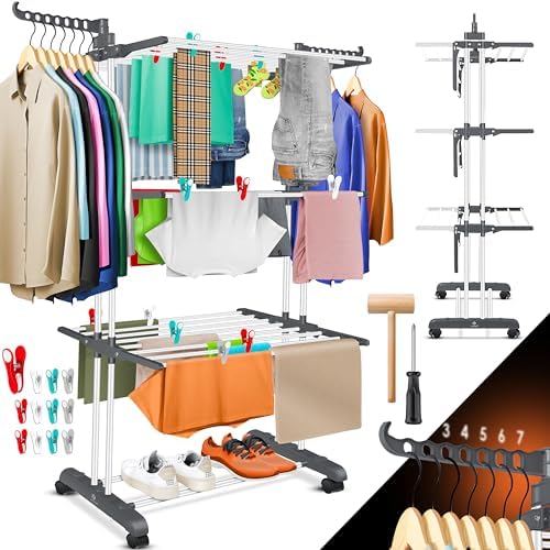 Insgesamt ist der KESSER® Wäscheständer-Turm mit Rädern ein praktischer und platzsparender Wäschetrockner, der sich ideal für den Einsatz im Innen- und Außenbereich eignet. Mit seinem modernen Design, der stabilen Konstruktion und den praktischen Features ist er eine sinnvolle Investition für jeden Haushalt.