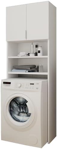 Das Badregal ist in einem zeitlosen Weiß gehalten, das zu jedem Badezimmerdesign passt. Durch sein schlichtes und elegantes Design fügt sich der Waschmaschinenschrank nahtlos in jede Einrichtung ein und verleiht dem Raum eine ordentliche und aufgeräumte Atmosphäre.