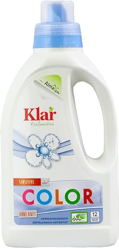 Klar eco Sensitive Color Waschmittel 750ml ist eine umweltfreundliche und hautschonende Option für alle, die unter Allergien leiden oder einfach nur auf der Suche nach einem veganen Waschmittel sind. Mit 12 Waschladungen pro Flasche ist es eine kostengünstige Lösung für Haushalte, die auf der Suche nach einer effektiven und schonenden Reinigung für ihre farbige Wäsche sind.