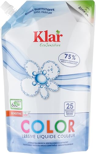 Allergiker haben oft Probleme mit herkömmlichen Waschmitteln, die aggressive Chemikalien und Duftstoffe enthalten können. Klar eco Sensitive Color Waschmittel ist dermatologisch getestet und hypoallergen, was bedeutet, dass es auch für Menschen mit empfindlicher Haut geeignet ist. Es enthält keine Parfüme, Farbstoffe oder Konservierungsstoffe und ist daher besonders sanft zur Haut.