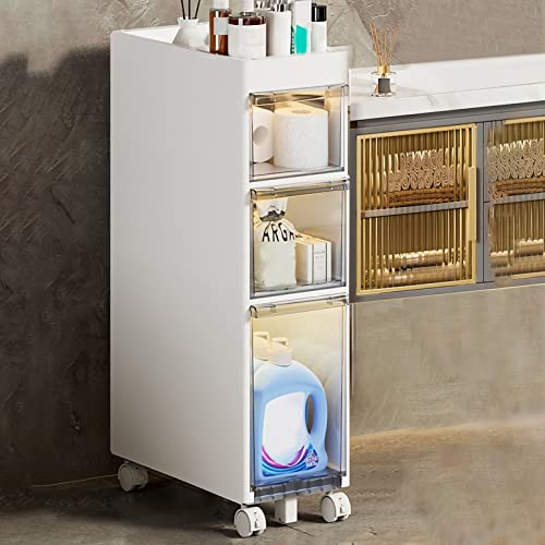 Ein kleiner Badezimmer-Aufbewahrungsschrank mit einer Breite von 9 Zoll und 4 Etagen ist die perfekte Lösung für kleine Badezimmer, die zusätzlichen Stauraum benötigen. Dieser schmale Badezimmer-Bodenschrank bietet ein großes Fassungsvermögen für die Aufbewahrung von Handtüchern, Toilettenartikeln und anderen Badutensilien. Mit seinen Kunststoffschubladen und Rollen ist er praktisch und funktional zugleich.