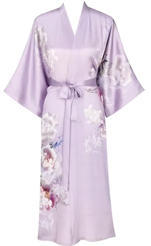 Der Kwedhonjh Klassischer Damen-Kimono-Bademantel ist ein exquisites Kleidungsstück, das aus 100 % Seide gefertigt ist. Dieser Bademantel besticht durch sein einzigartiges bedrucktes Muster, das als Anonymous Flower Purple bekannt ist. Mit seiner Einheitsgröße passt er sich jeder Figur perfekt an und sorgt für einen luxuriösen Look.