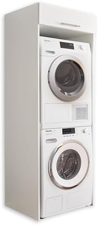 Der LAUNDREEZY Waschmaschinenschrank für Trockner und Waschmaschine in Weiß ist ein praktischer Überbauschrank, der für Ordnung und Stil in Ihrem Waschraum sorgt. Mit den Maßen von 67,5 x 200 x 67,5 cm (B/H/T) bietet er ausreichend Platz für Ihre Waschmaschine und Trockner. Der Schrank ist speziell dafür konzipiert, Ihre Geräte zu verbergen und gleichzeitig einen schönen Anblick zu bieten.