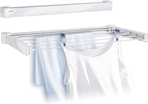 Der Leifheit Wandtrockner Telegant 30 Protect ist die ideale Lösung für kleine Haushalte, die wenig Platz haben, aber dennoch nicht auf eine praktische Möglichkeit zum Wäschetrocknen verzichten möchten. Mit einer Länge von 3 Metern bietet dieser Wäschetrockner ausreichend Platz für die Trocknung Ihrer Kleidung, Handtücher und anderen Textilien.