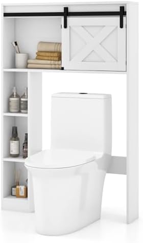 Das moderne Design des Toilettenregals fügt sich nahtlos in jede Einrichtung ein und sorgt für Ordnung und Übersichtlichkeit. Die Schiebetür ermöglicht einen einfachen Zugriff auf den Inhalt des Schranks, während die drei Einlegeböden individuell angepasst werden können, um den Bedürfnissen des Nutzers gerecht zu werden.