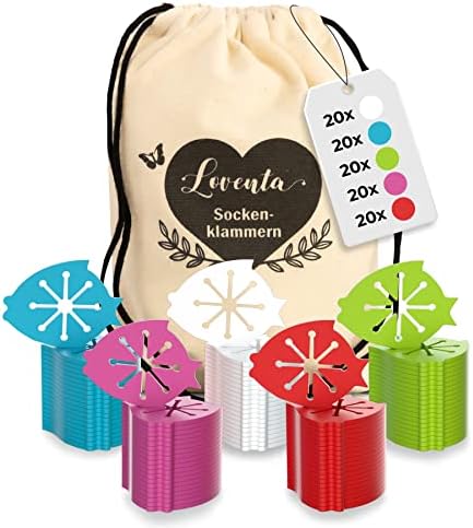 Die LOVENTA® Sockenklammern sind eine praktische Lösung, um lästiges Sockensortieren nach dem Waschen zu vermeiden. Mit 100 Stück in einer Packung ist man für zahlreiche Waschgänge gerüstet. Die Sockenklammern sorgen für einen sicheren Halt der Socken in der Waschmaschine und im Trockner, sodass man nie wieder einzelne Socken suchen muss.