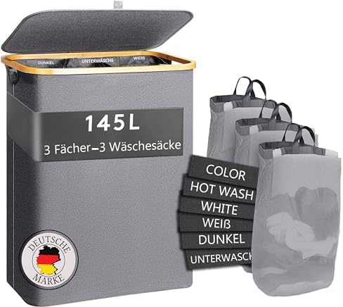 Der Luxus-Home Wäschekorb mit 3 Fächern ist die perfekte Lösung, um Ihre Wäsche stilvoll und organisiert zu sammeln. Mit einem Fassungsvermögen von 145 Litern bietet dieser Wäschesammler ausreichend Platz für Ihre schmutzige Wäsche. Der Wäschekorb verfügt über einen Deckel, der verhindert, dass Gerüche aus der Wäsche entweichen und Ihr Zuhause frisch und ordentlich hält.