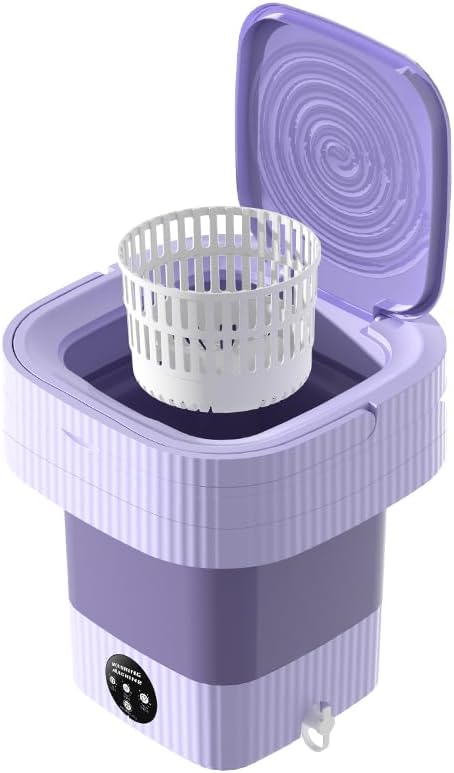 Die Mini Waschmaschine ist nicht nur klein und leicht, sondern auch faltbar, was sie besonders platzsparend und einfach zu transportieren macht. Sie passt problemlos in jeden Kofferraum oder Rucksack und ist somit ideal für unterwegs. Die violette Farbe verleiht ihr zudem eine fröhliche und ansprechende Optik.