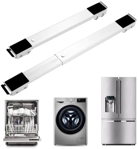 MIUUIPI Waschmaschinen-Untergestell mit Bremse, 2 Stücke Einstellbar Waschmaschinen Untergestell, 45-72 cm Ausziehbares Gleitsystem, Bremse Möbelroller für Möbel für Kühlschrank, Sofas, Schränke ist die perfekte Lösung, um schwere Haushaltsgeräte und Möbel sicher und einfach zu transportieren und zu positionieren. Mit diesem Unterstellrahmen können Sie Ihre Waschmaschine, Kühlschrank, Sofa oder Schrank mühelos bewegen, ohne sich dabei zu verletzen oder Schäden an Ihren Böden zu verursachen.