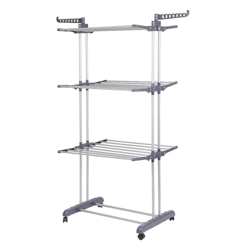 Der MUL-BOUTIQUE Wäscheständer ist in einem eleganten Silbergrau gehalten, was ihm ein modernes und ansprechendes Aussehen verleiht. Er passt somit perfekt in jede Einrichtung und ist ein praktisches Hilfsmittel im Haushalt. Ob zum Trocknen von Wäsche nach dem Waschen oder zum Lufttrocknen von Kleidung im Sommer, dieser Wäscheständer ist ein unverzichtbares Utensil für jeden Haushalt.