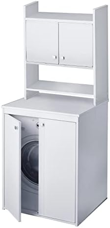 Der Negrari Waschmaschinenschrank verfügt über eine Tür mit einem praktischen Griff, der das Öffnen und Schließen erleichtert. Im Inneren des Schrankes befinden sich zwei Regale, auf denen Sie Ihre Waschmittel, Weichspüler und andere Reinigungsutensilien ordentlich und griffbereit verstauen können. Das Aufbewahrungsregal bietet zusätzlichen Stauraum für kleinere Gegenstände wie Putzlappen, Bürsten oder Wäscheklammern.