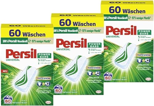 Persil Power Bars Universal Waschmittel ist eine innovative Lösung für saubere und frische Wäsche. Die vordosierten Power Bars sind einfach zu handhaben und sorgen für eine optimale Dosierung des Waschmittels bei jeder Wäsche. Mit einer Packung erhalten Sie insgesamt 180 Waschladungen, was bedeutet, dass Sie lange Zeit mit nur einer Packung auskommen.