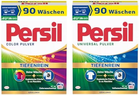 Insgesamt bietet das PERSIL Pulver-Set mit 2x 90 Waschladungen (180WL) eine zuverlässige und effektive Lösung für die Reinigung Ihrer Wäsche. Mit einer Packung, die sowohl Color- als auch Universalwaschmittel enthält, sind Sie für alle Fälle gerüstet und können sich auf saubere und frische Ergebnisse verlassen. Probieren Sie das PERSIL Pulver-Set aus und überzeugen Sie sich selbst von der Qualität und Leistungsfähigkeit dieser Waschmittel.