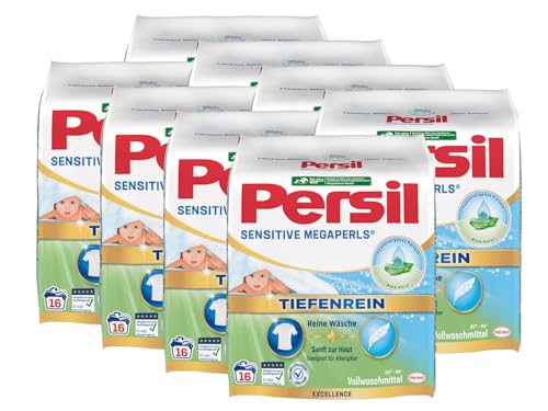 Persil Sensitive Megaperls Tiefenrein 128 Waschladungen (8x 16WL) ist ein speziell entwickeltes Waschmittel für Allergiker mit sensibler Haut. Das Produkt ist mit beruhigender Aloe vera angereichert, um die Haut während des Waschvorgangs zu schützen und zu pflegen. Die Formel ist effektiv bei Temperaturen von 20°C bis 95°C und sorgt für eine gründliche Reinigung, selbst bei hartnäckigen Flecken.