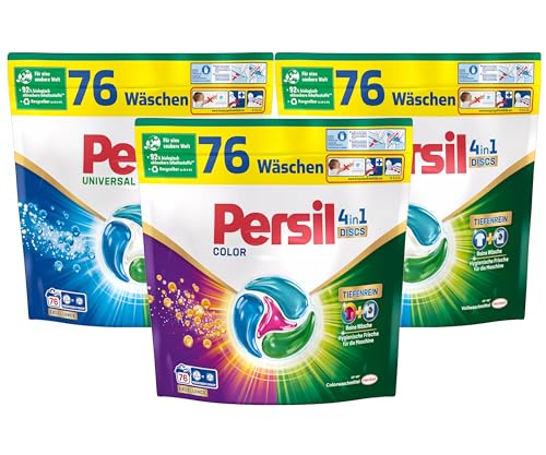 Das Persil Set 2x Universal & 1x Color 4in1 DISCS bietet eine effektive und bequeme Lösung für saubere und frische Wäsche. Mit insgesamt 228 Waschladungen, bestehend aus 3x 76WL, ist dieses Set ideal für Haushalte mit einem hohen Waschbedarf. Das Vollwaschmittel und Color Waschmittel in den Discs sorgen für eine Tiefenreinigung der Kleidung und hinterlassen ein langanhaltendes Frischegefühl.