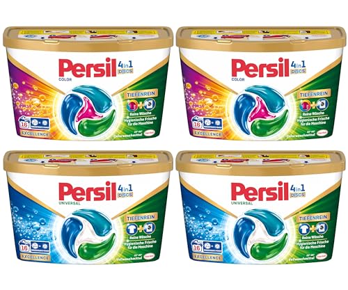 Das Persil Set 2x Universal & 2x Color 4in1 DISCS bietet eine effektive Lösung für saubere und frische Wäsche. Mit insgesamt 96 Waschladungen (6x 16WL) ist dieses Set ideal für Haushalte, die sowohl weiße als auch bunte Kleidung waschen möchten. Das Vollwaschmittel und Color Waschmittel in Form von Discs sorgen für eine gründliche Reinigung und hygienische Frische in der Waschmaschine.