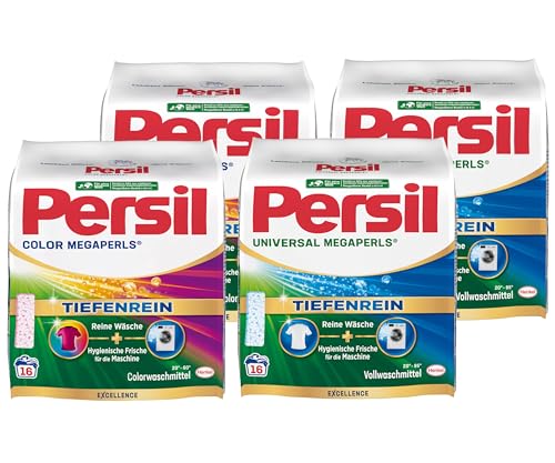 Persil Set 2x Universal & 2x Color Megaperls 64 Waschladungen (4x 16WL) Vollwaschmittel & Color Waschmittel Tiefenrein für reine Wäsche & hygienische Frische für die Maschine 20 °C bis 95 °C ist ein hochwertiges Waschmittel, das für saubere und frische Wäsche sorgt. Mit diesem Set erhalten Sie sowohl Universal- als auch Color-Waschmittel, das für alle Waschtemperaturen von 20 °C bis 95 °C geeignet ist.