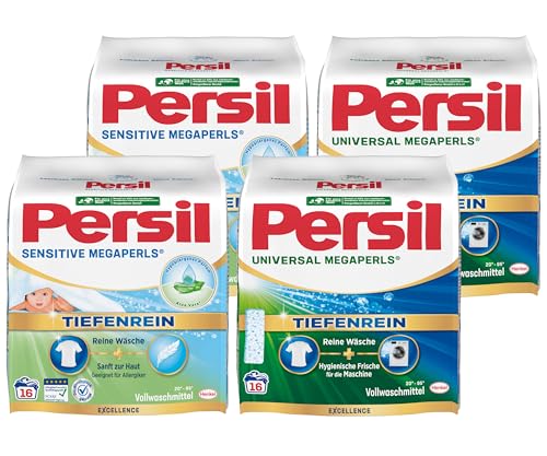 Persil Set 2x Universal & 2x Sensitive Megaperls Tiefenrein 64 Waschladungen (4x 16WL) ist eine innovative und hochwirksame Kombination aus Vollwaschmittel und Waschmittel für Allergiker und sensible Haut. Mit diesem Set erhalten Sie insgesamt 64 Waschladungen, die Ihre Wäsche gründlich reinigen und gleichzeitig schonend pflegen.