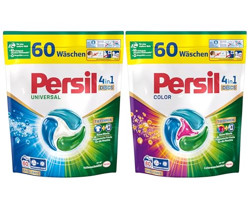 Das Persil Set Universal & Color 4in1 DISCS bietet eine effektive Reinigung für alle Arten von Wäsche. Mit insgesamt 120 Waschladungen, aufgeteilt in zwei Packungen mit jeweils 60 Waschladungen, ist dieses Set ideal für Haushalte mit einem hohen Waschbedarf.