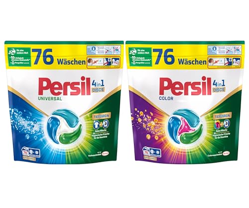Persil Set Universal & Color 4in1 DISCS bietet eine effektive Lösung für alle Ihre Waschbedürfnisse. Mit insgesamt 152 Waschladungen in zwei praktischen Packungen mit jeweils 76 Waschladungen, ist dieses Vollwaschmittel und Color Waschmittel die ideale Wahl für Familien und Haushalte mit einem hohen Waschaufkommen.