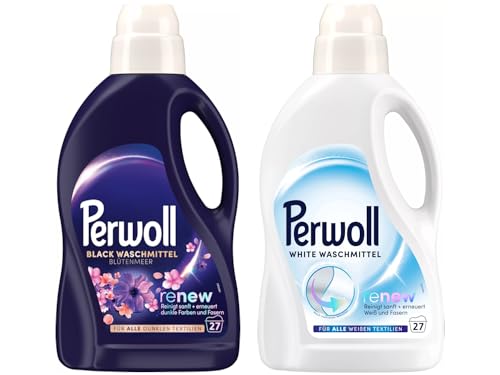 Das PERWOLL Flüssig-Set mit 2x 27 Waschladungen (insgesamt 54 WL) besteht aus einem Feinwaschmittel-Set, das speziell für dunkle Farben und Weiß entwickelt wurde. Mit den beiden Varianten Black Blütenmeer und White sorgt dieses Set für eine sanfte Reinigung und Erneuerung von dunklen Farben und weißen Textilien.
