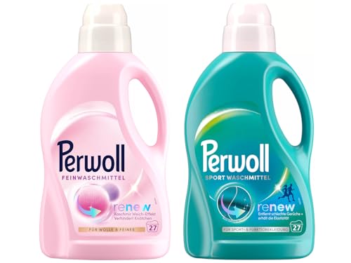 Das PERWOLL Flüssig-Set besteht aus zwei Flaschen mit je 27 Waschladungen, insgesamt also 54 Waschladungen. Eine Flasche ist speziell für Wolle und Feines, während die andere für Sportbekleidung geeignet ist. Beide Feinwaschmittel haben verschiedene Eigenschaften, die sie zu einem unverzichtbaren Bestandteil jeder Wäschepflegeroutine machen.