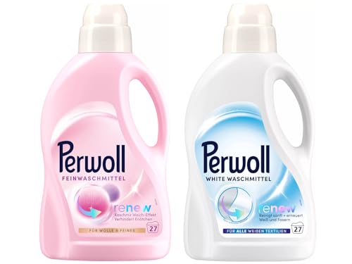 Das PERWOLL Flüssig-Set besteht aus zwei Flaschen Feinwaschmittel, die jeweils für unterschiedliche Textilien geeignet sind. Die eine Flasche ist speziell für Wolle und feine Stoffe konzipiert, während die andere für weiße Kleidung und empfindliche Materialien gedacht ist. Mit insgesamt 54 Waschladungen pro Set bietet das PERWOLL Flüssig-Set eine langanhaltende Reinigungslösung für alle Arten von Textilien.