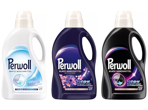 Das PERWOLL Flüssig-Set eignet sich besonders gut für dunkle und helle Kleidung. Das Black Feinwaschmittel reinigt dunkle Farben schonend und schützt sie vor dem Verblassen. Das Black Blütenmeer Feinwaschmittel verleiht Ihrer Kleidung einen angenehmen Duft nach Blumen und sorgt gleichzeitig für eine gründliche Reinigung. Das White Feinwaschmittel ist speziell für weiße Kleidung entwickelt und sorgt dafür, dass Ihre weißen Stücke strahlend bleiben.