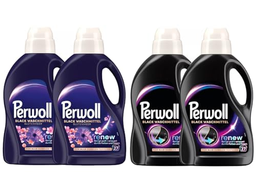 Das PERWOLL Flüssig-Set enthält insgesamt vier Flaschen mit je 27 Waschladungen, was insgesamt 108 Waschladungen entspricht. Zwei der Flaschen enthalten das Feinwaschmittel Black, das speziell für dunkle Kleidungsstücke entwickelt wurde. Die anderen beiden Flaschen enthalten das Feinwaschmittel Black Blütenmeer, das einen angenehmen Duft von Blumen hinterlässt.