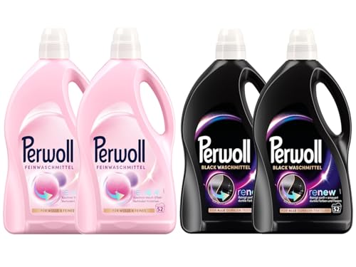 Insgesamt ist das PERWOLL Flüssig-Set 4x 52 Waschladungen eine ideale Lösung für die schonende Reinigung und Pflege von empfindlichen Textilien. Mit der Kombination aus dem Feinwaschmittel Black und Für Wolle & Feines werden Farben erneuert, Fasern geschützt und Knötchenbildung vorgebeugt. So bleibt die Kleidung länger schön und gepflegt und man kann sich an seinen Lieblingsstücken lange erfreuen.