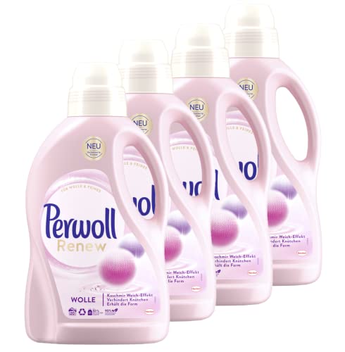 Perwoll Renew Wolle Flüssigwaschmittel ist ein hochwertiges Feinwaschmittel speziell für Wolle, Kaschmir und Seide. Mit diesem Wollwaschmittel können Sie Ihre empfindlichen Textilien schonend reinigen und pflegen, ohne dabei die Fasern zu strapazieren. Das Flüssigwaschmittel ist in praktischen 80 Waschgängen erhältlich, aufgeteilt in 4 Packungen mit jeweils 20 Wäschen.