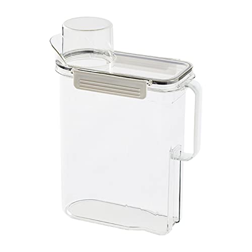 Der Durchsichtige Waschmittelbehälter Spenderhalter mit Messbecher von Predolo ist eine moderne Aufbewahrungsbox, die nicht nur praktisch ist, sondern auch stilvoll in der Küche aussieht. Mit diesem Behälter kannst du nicht nur Waschmittel aufbewahren, sondern auch Küchenseife, Reis, Trockenkorn und andere Trockenprodukte.