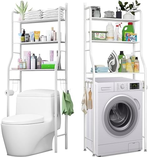 Das Waschmaschinenregal eignet sich ideal für kleine Badezimmer, in denen jeder Zentimeter zählt. Mit dem WC Regal können Sie den Raum über Ihrer Waschmaschine optimal nutzen und haben so zusätzlichen Stauraum für Waschmittel, Weichspüler und andere Waschutensilien. Der Waschmaschinenüberbau ist multifunktional und vielseitig einsetzbar.