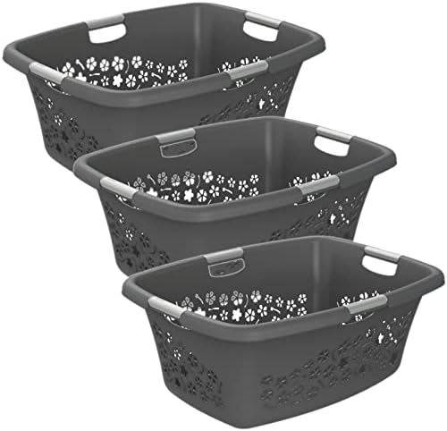 Der Rotho 3er-Set Wäschekorb Flowers 50l ist die ideale Lösung, um Ihre schmutzige Wäsche stilvoll und ordentlich zu verstauen. Mit einem Fassungsvermögen von jeweils 50 Litern bieten die drei Wäschekörbe aus hochwertigem Kunststoff (PP) genügend Platz für eine große Menge an Wäsche. Das Set ist in einem eleganten anthrazitfarbenen Design gehalten und mit einem Blumenmuster verziert, das jedem Raum eine frische und moderne Note verleiht.
