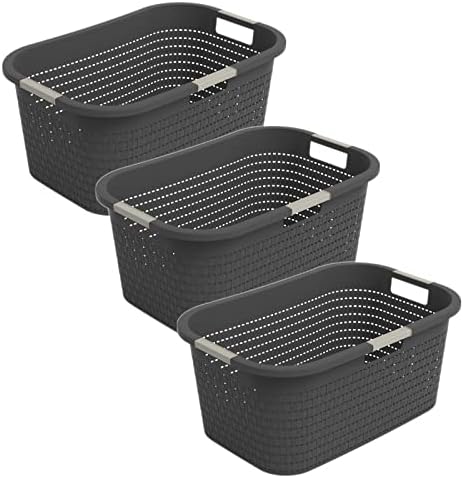 Das Set besteht aus drei Wäschekörben in der Farbe Anthrazit, die mit ihren Maßen von 58.0 x 38.9 x 25.1 cm perfekt in jeden Raum passen. Dank ihres schlichten Designs fügen sich die Wäschekörbe harmonisch in jedes Ambiente ein und sorgen für Ordnung im Haushalt. Die praktischen Griffe an den Seiten erleichtern das Tragen und Transportieren der Wäsche.