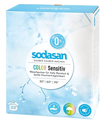 Sodasan Color Waschpulver Sensitiv ist eine umweltfreundliche und hautschonende Alternative zu herkömmlichen Waschmitteln. Das Waschpulver ist besonders für Menschen mit sensibler Haut geeignet, da es frei von Duftstoffen, Enzymen und optischen Aufhellern ist. Es besteht aus natürlichen Inhaltsstoffen und ist daher biologisch abbaubar.
