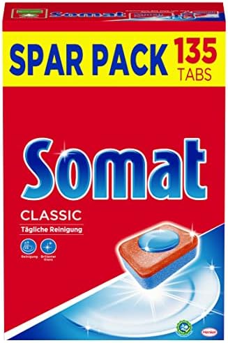 Somat Classic Spülmaschinen Tabs sind die perfekte Lösung für eine kraftvolle Reinigung deines Geschirrs. Mit insgesamt 135 Tabs in einer Packung bist du für zahlreiche Spülgänge gerüstet und kannst dich auf ein strahlend sauberes Ergebnis verlassen.